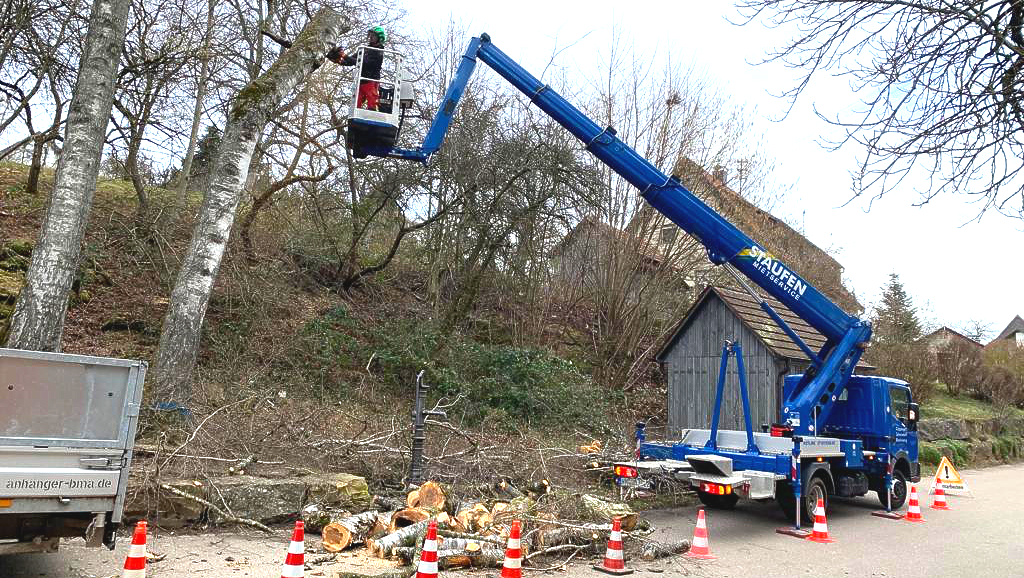 Mit geschulten Baumkletterern sorgen wir in Seilklettertechnik oder mit der Hebebühne für die Verkehrssicherheit Ihrer Bäume.
